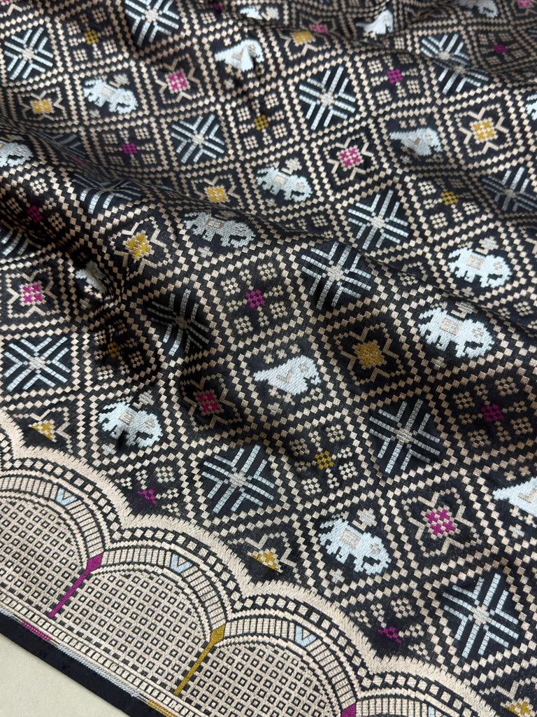 Black colour pure Katan silk handwoven banarasi saree