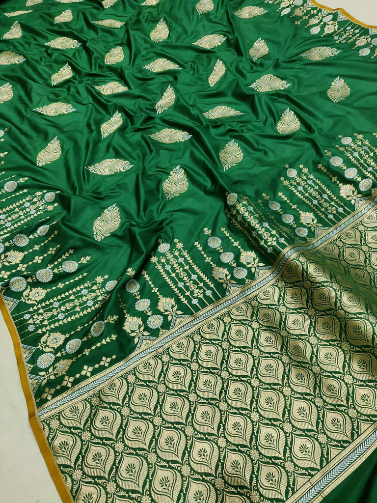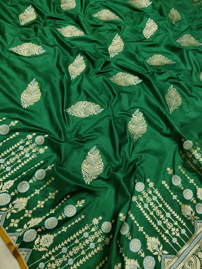 Dark green Colour Pure Katan Silk Handwoven Banarasi Saree