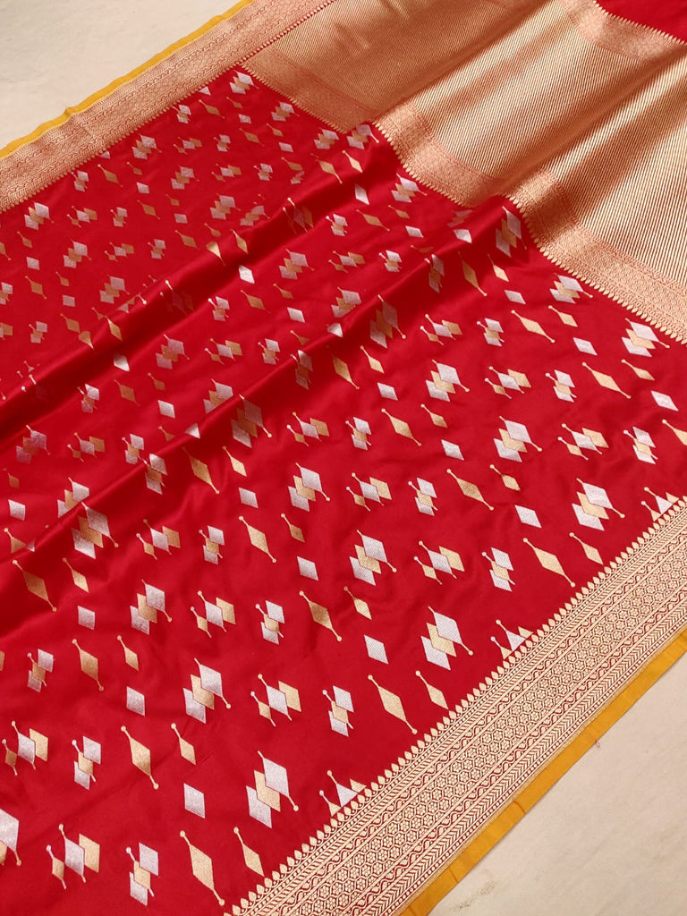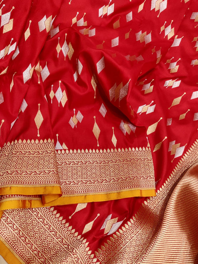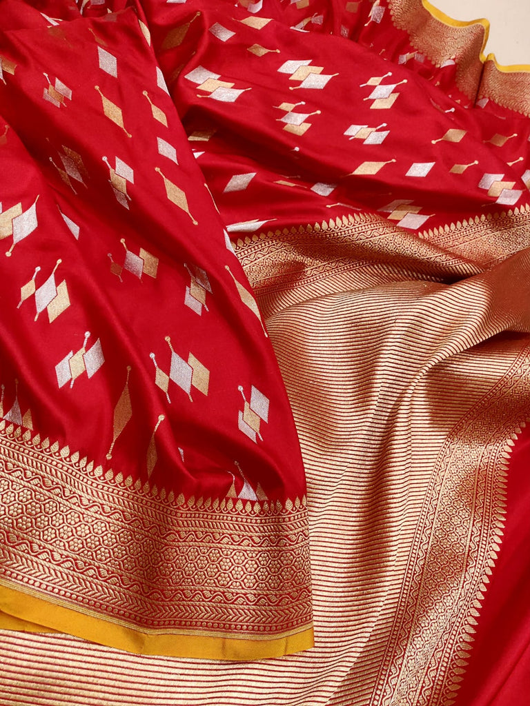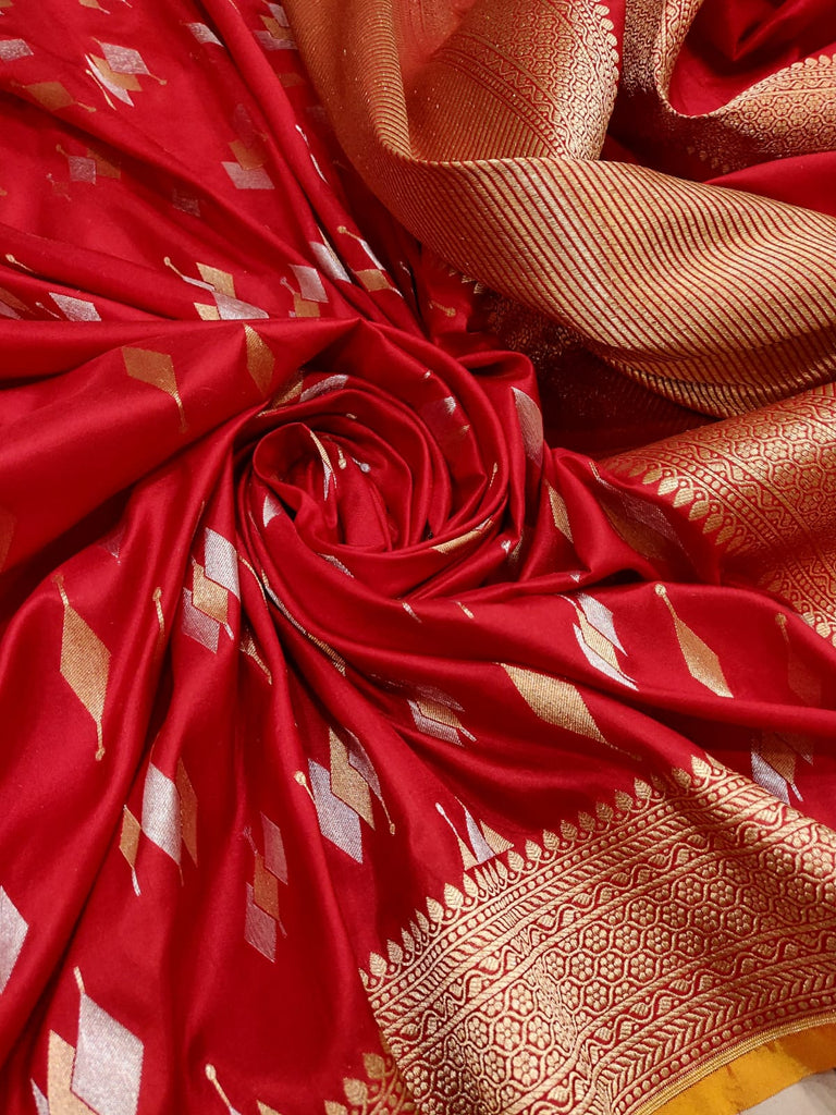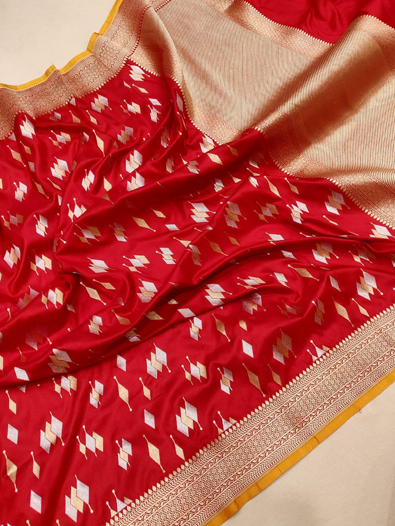 Red colour Pure Katan Silk Handwoven Banarasi Saree