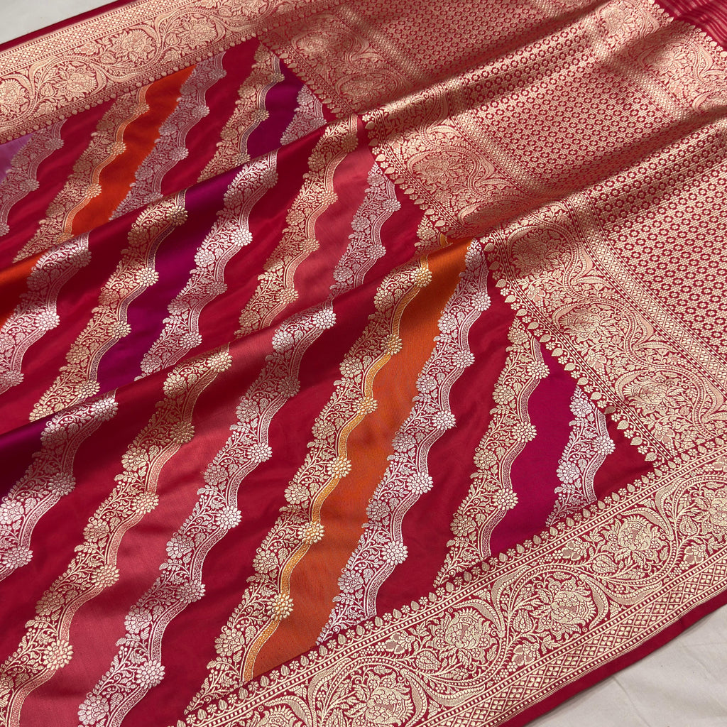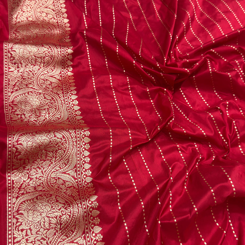 Red colour pure katan silk Handwoven banarasi rangkat saree