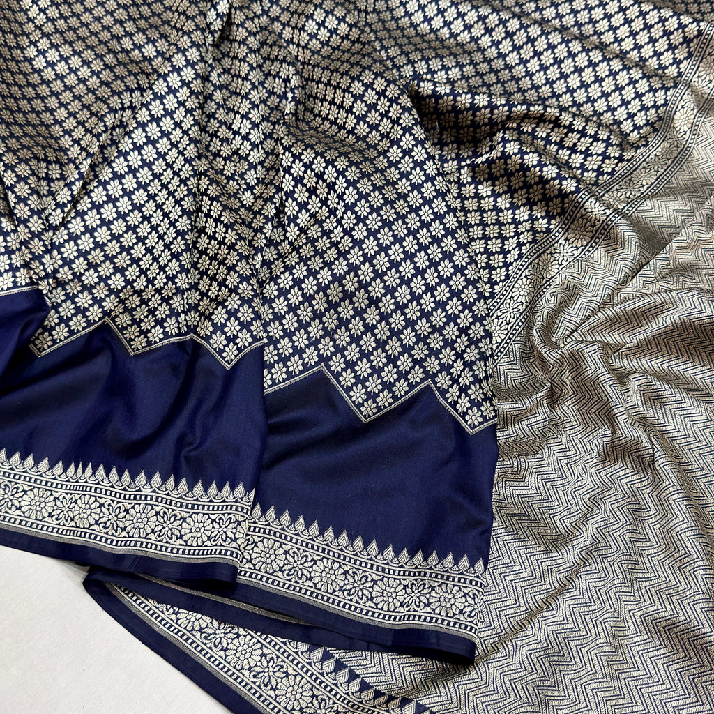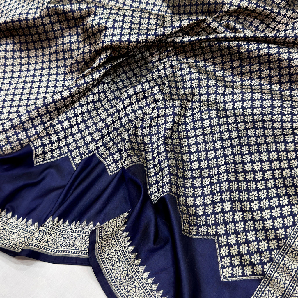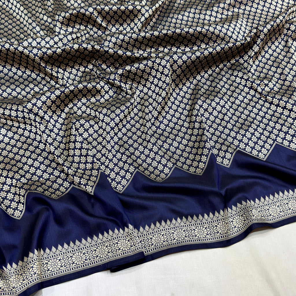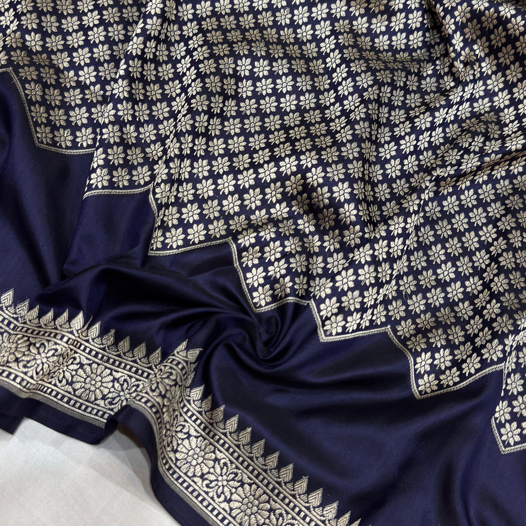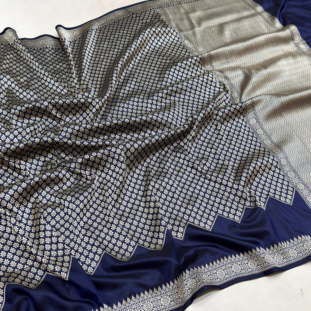 Nevi blue colour pure katan silk Handwoven banarasi saree