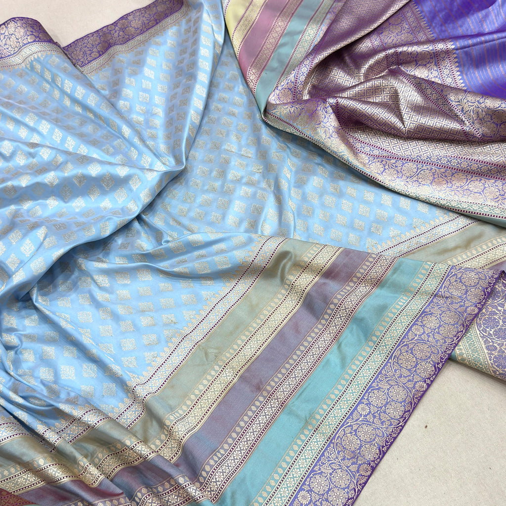 Sky Blue colour pure katan silk Handwoven banarasi saree