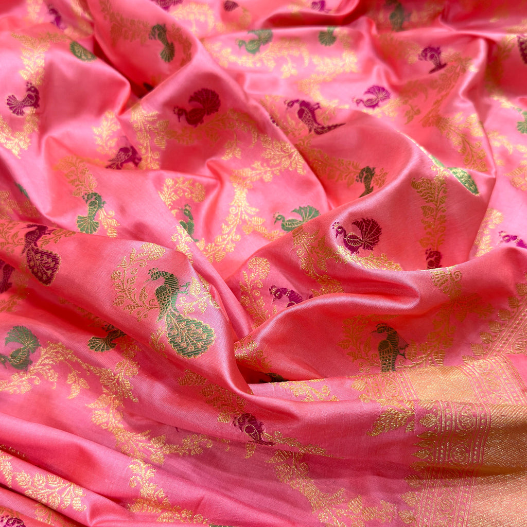Baby pink colour pure katan silk Handwoven banarasi jungla saree