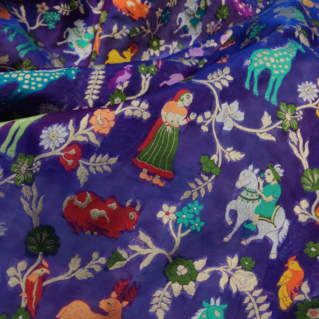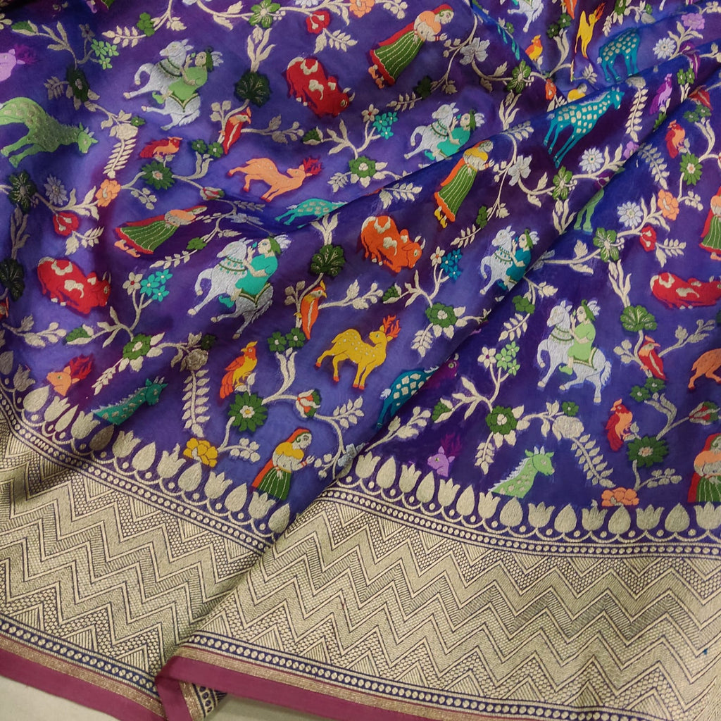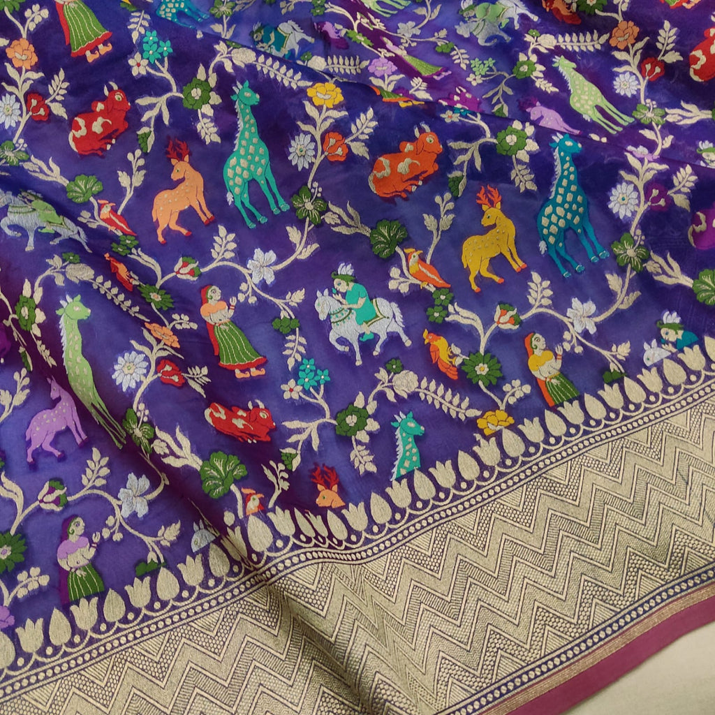 Royal blue Pure Kora Silk Handwoven Banarasi Saree