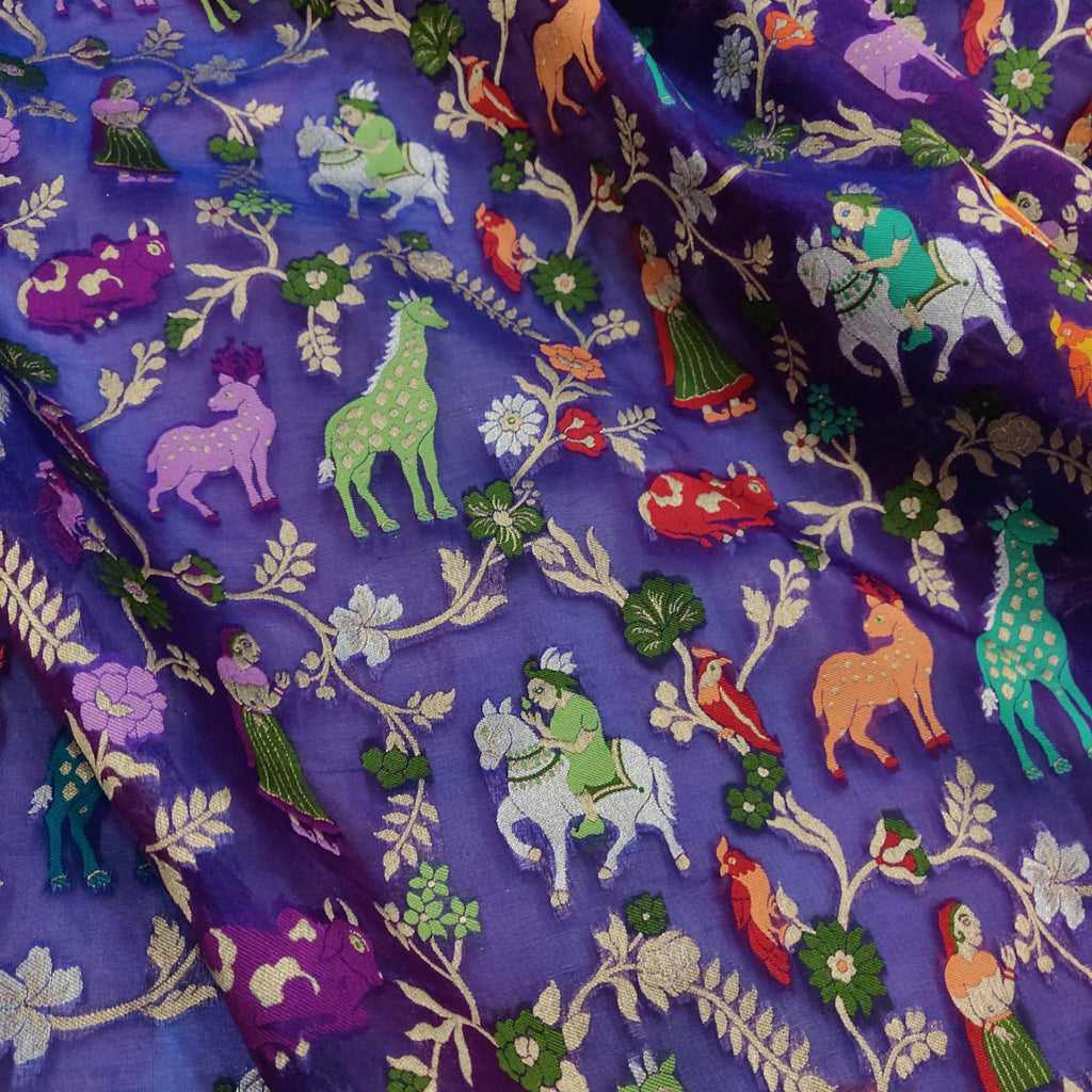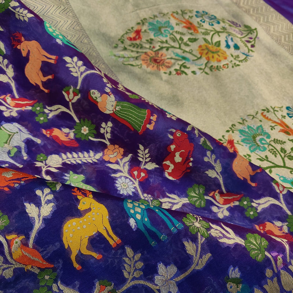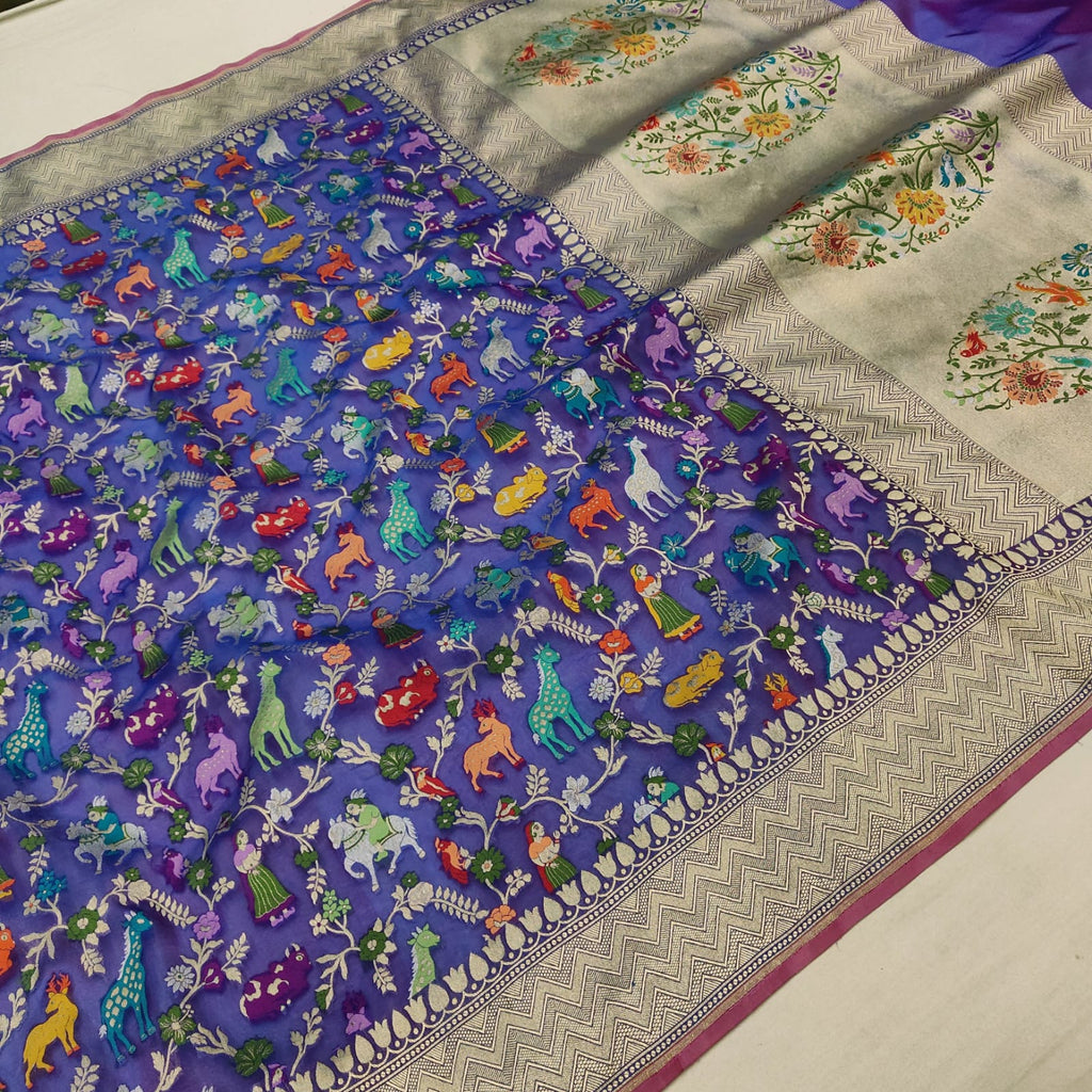 Royal blue Pure Kora Silk Handwoven Banarasi Saree