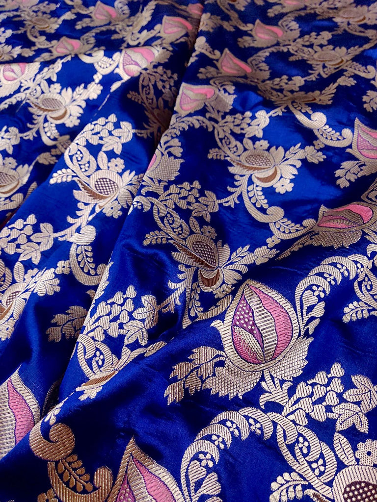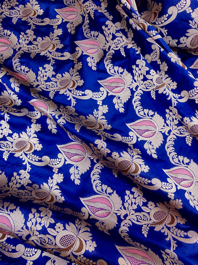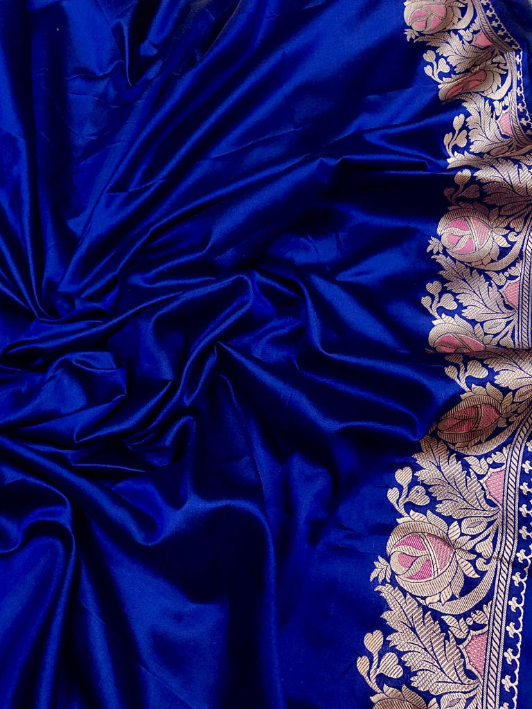 Royal blue colour Pure Katan Silk Handwoven Banarasi Saree