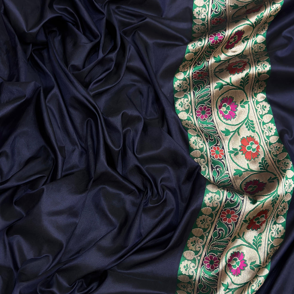 Nevi blue colour pure katan silk Handwoven banarasi saree