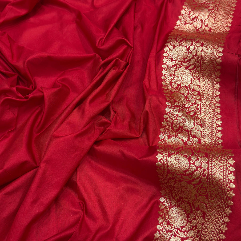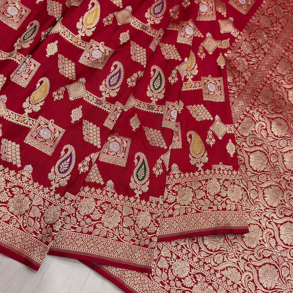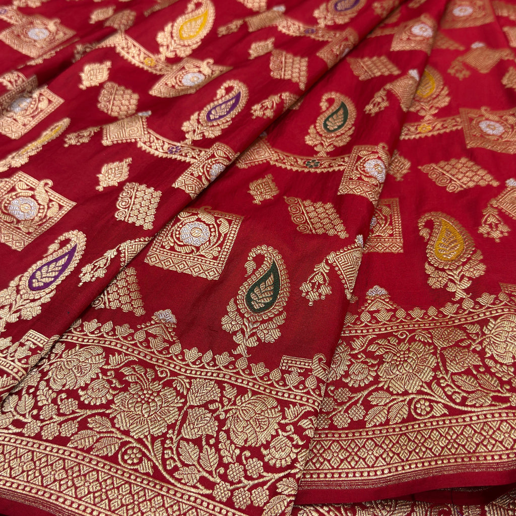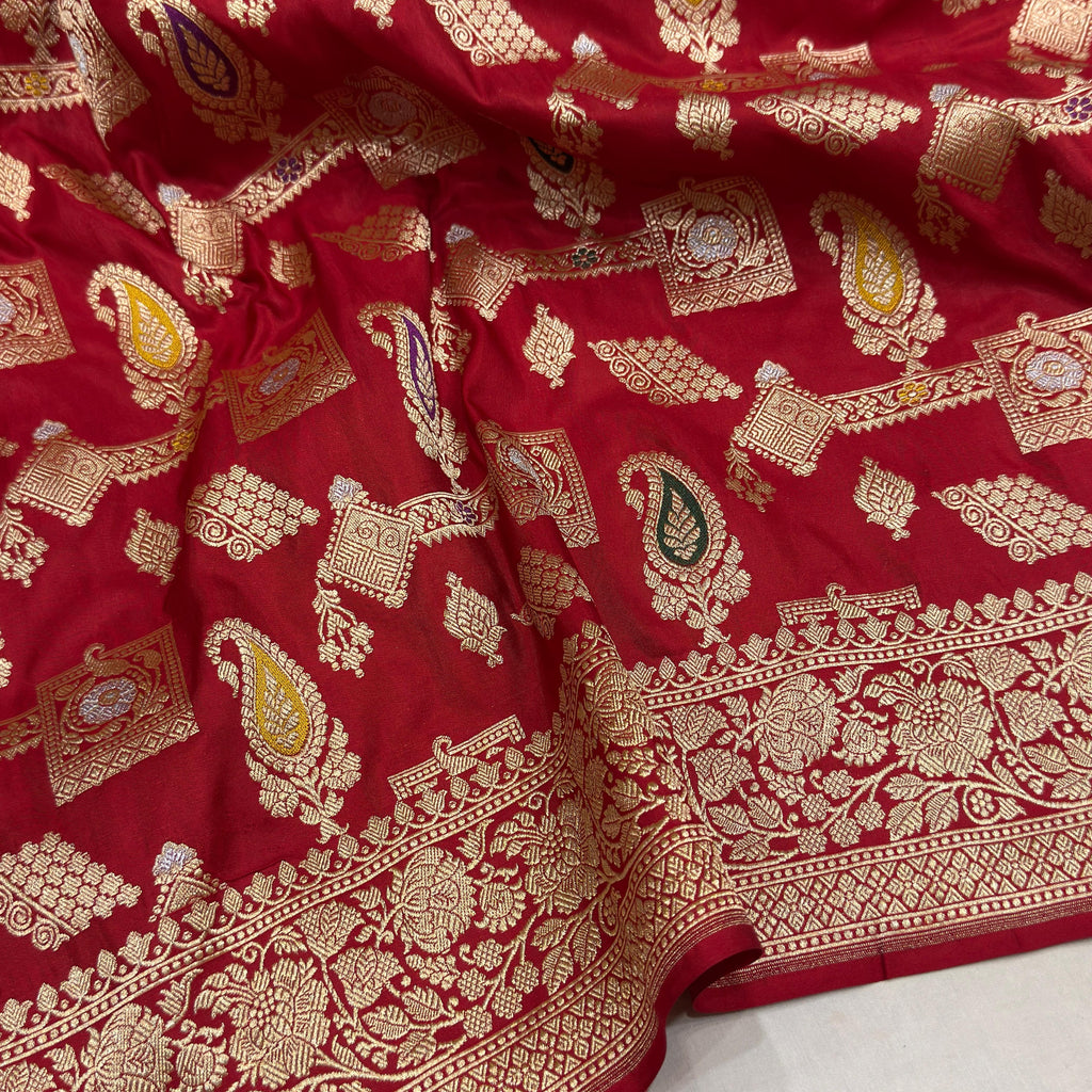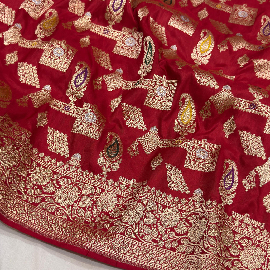 Red colour pure mashru silk Handwoven banarasi saree