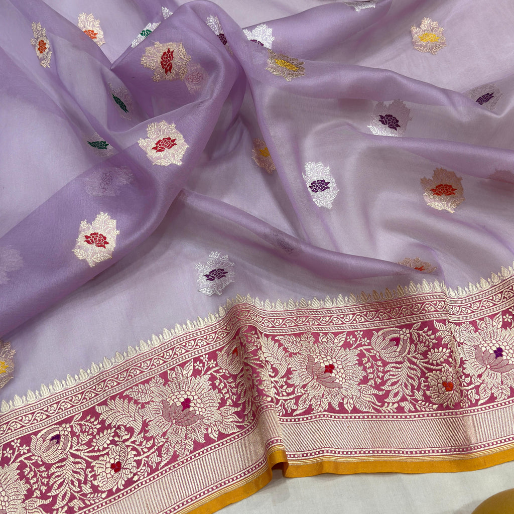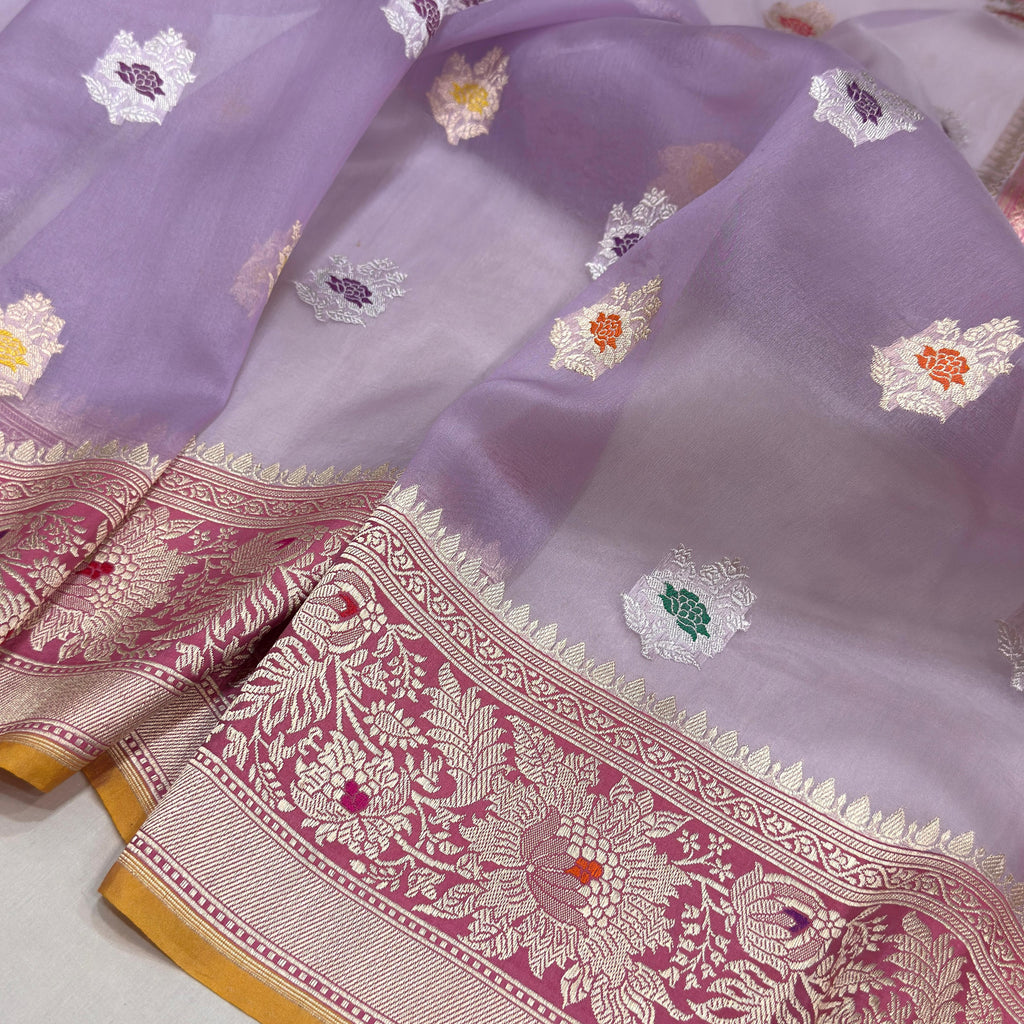 Lavender colour pure kora Handwoven banarasi saree